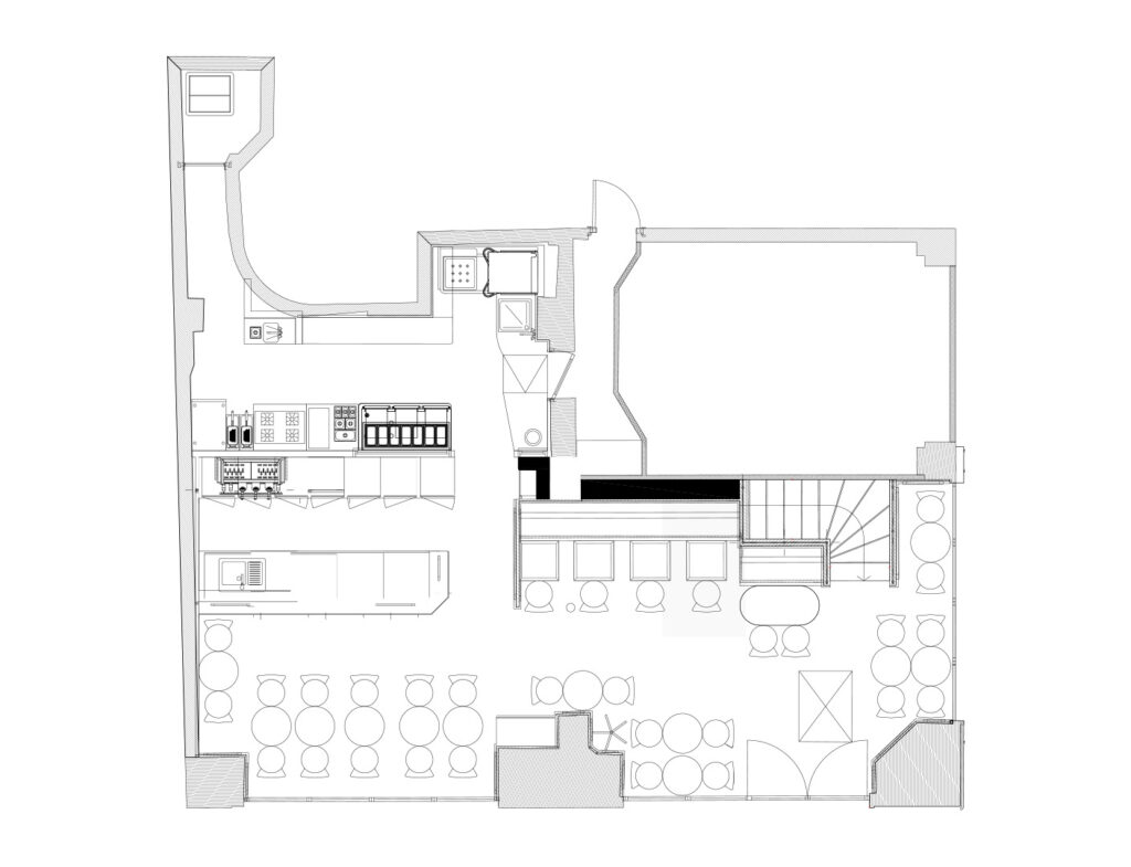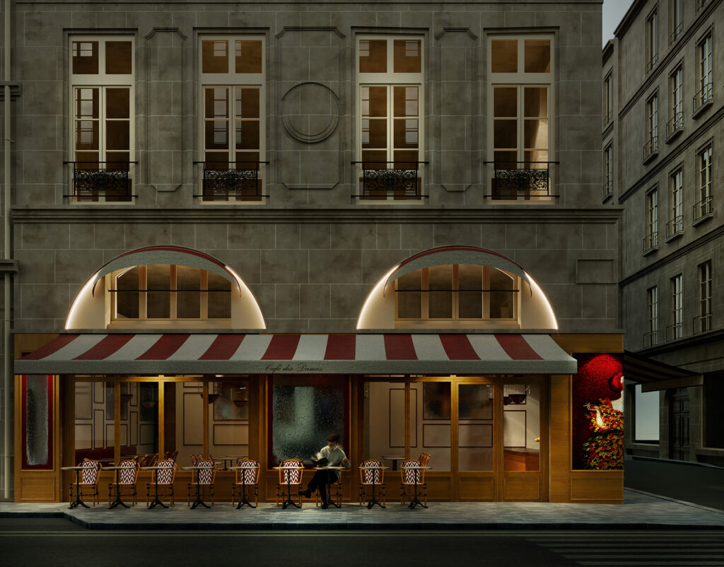 Situé au 49 rue des Petits Champs dans le 1er arrondissement, le Café des Dames réconcilie le charme historique du quartier et les exigences actuelles. Nous avons agrandi la cuisine, créé de nouveaux vestiaires, refait la façade avec une boiserie et une mosaïque inspirée de Leonetto Cappiello, et amélioré l’accès au sous-sol, afin de redonner à ce lieu son identité parisienne authentique.